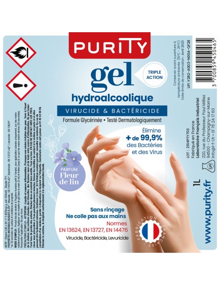 Bidon de 20 litres - Gel Hydroalcoolique Purity 703 - Parfum Fleur de Lin