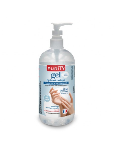Flacon pompe de 1 litre de gel hydroalcoolique Purity 703.