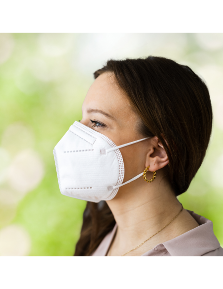 Masques protection respiratoire FFP2 à usage unique.Conforme à la norme KN95 qui certifie une performance filtrante d'au moins 95% (94% pour le FFP2).Composé de 3 couches filtrantes et respirantes.Bande de pince-nez réglable, s'adapte bien au visage.Pack de 10 sachets hermétiques de 5 masques.